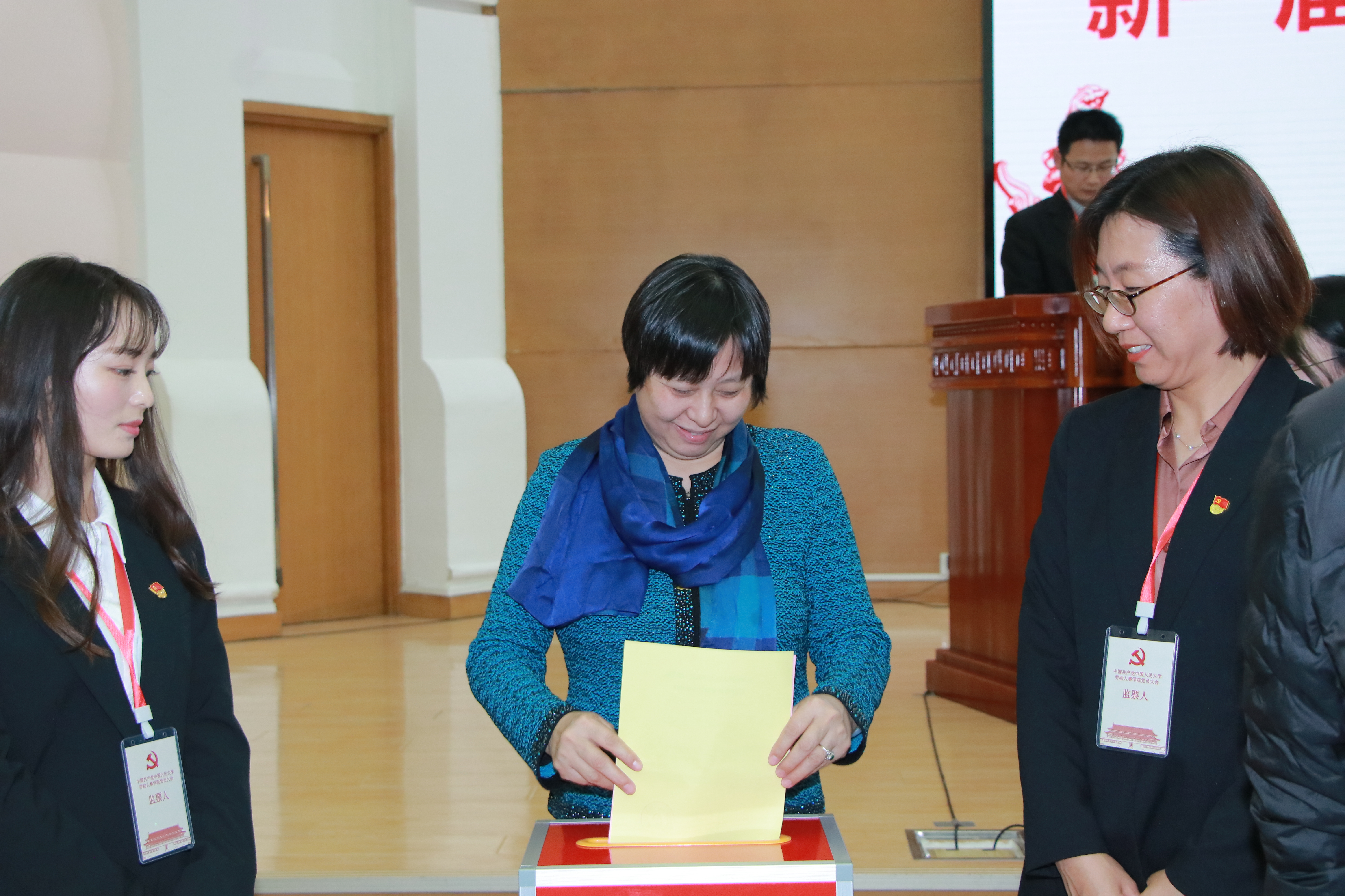 填写完毕后,总监票人和监票人首先投票,党员代表在工作人员引导下进行投票。投票完成后,监票人与计票人现场清点选票。