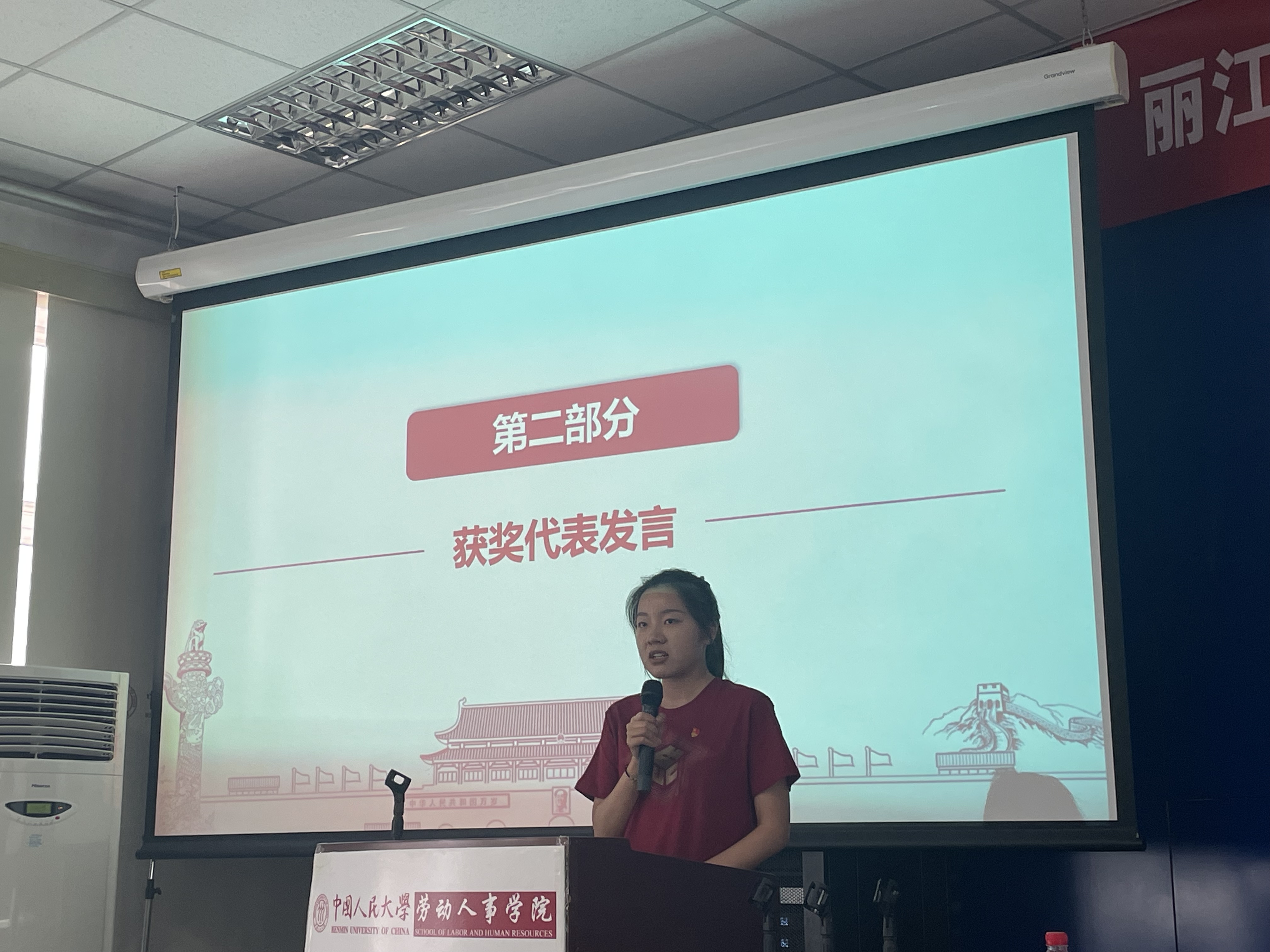 “优秀党务工作者(党支部书记)”代表、2022级硕士生王欣茹在发言中总结了支部工作的三项强化措施,一是党建培训和优化支委会工作机制,二是不断提升党员队伍质量,三是重视主题党日创新与学习教育,发言结尾她表达了对公司培养的感激之情及对支部未来的美好祝愿。