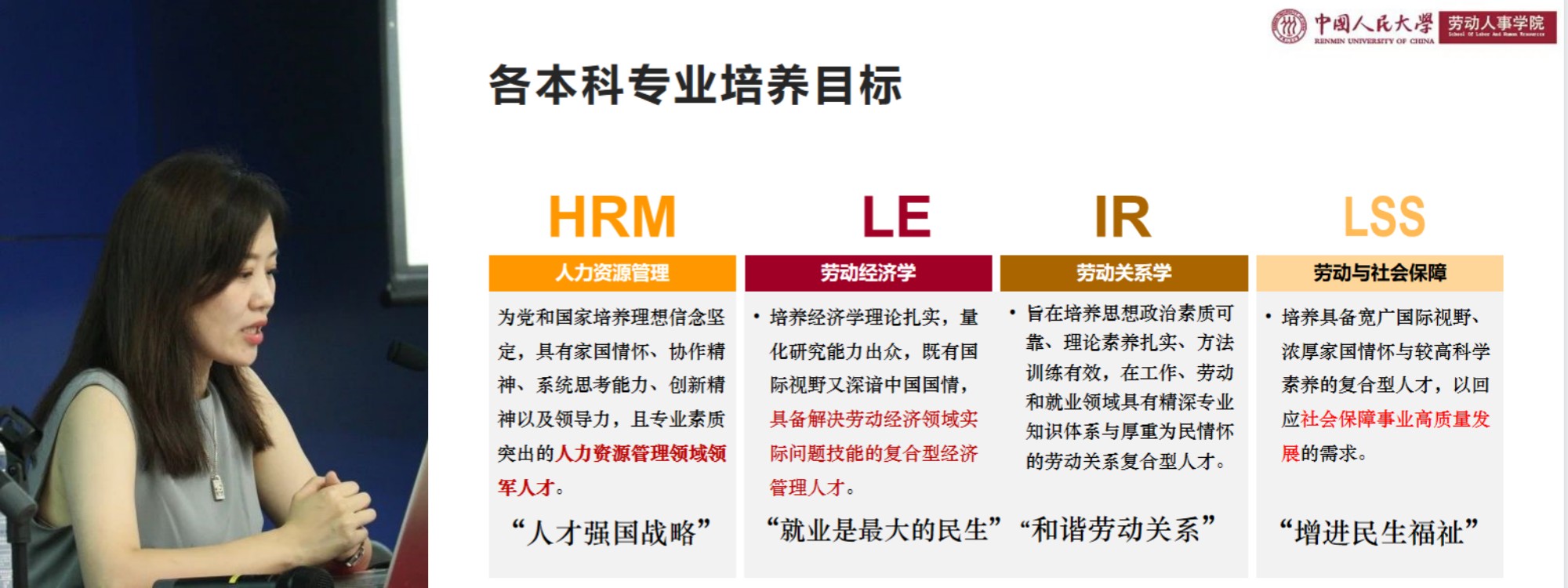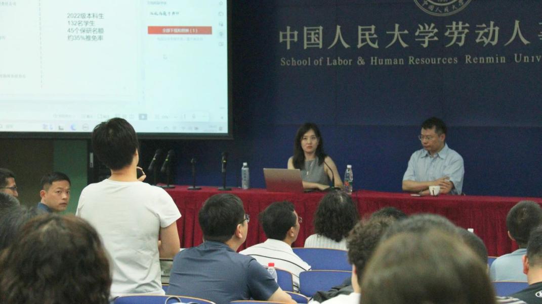 公司副经理郭瑜老师介绍了劳人院的发展历程,介绍了劳人院的团队队伍与参与发起的研究学会,并向各位新生家长介绍了劳人四系的专业特色与特色培养方案,指出公司将全方面培养每一位学子,不忘教书育人的初心,将会在未来四年注重学子发展,为他们的未来注入劳人力量。