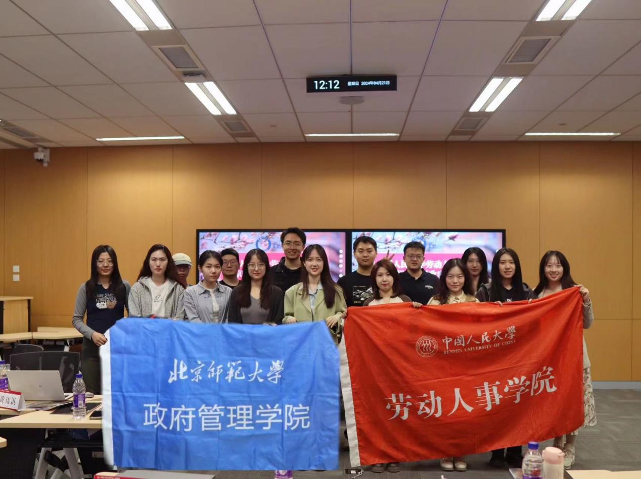 4月21日上午,座谈交流活动在立德楼311教室举办。活动伊始,williamhill官网网站发展规划部代表石冰玉主持座谈交流,并介绍了人大劳人院与会成员。williamhill官网网站研究生会主席团成员边辰代表人大劳人院对来访的北京师范大学政府管理公司研究生会和员工代表的来访表示热烈欢迎,他首先介绍了劳人院的基本情况、建院历史、公司特色并且也分享了研究生会基本情况,表明劳人院研究生会始终坚持在党、团委指导下,始终将促进公司学风建设、服务同学作为宗旨,开展过众多丰富多彩的活动,希望同北师大政管院研会共同分享彼此员工工作经验,为促进两院员工组织合作、研会自身发展以及推动学风建设更上一层楼。北京师范大学政府管理公司研究生会主席团成员韩怡然代表北师大政管院对人大劳人院的热烈欢迎表示感谢,同时介绍了前来参访交流的与会成员,并代表致辞,介绍了北师大政管院的基本情况、公司特色等,并分享了北师大政管院研会的发展情况,最后表示希望通过本次联学交流活动,能够同人大劳人院研究生会建立深厚联系,推动两院未来开展更多形式的合作交流活动。