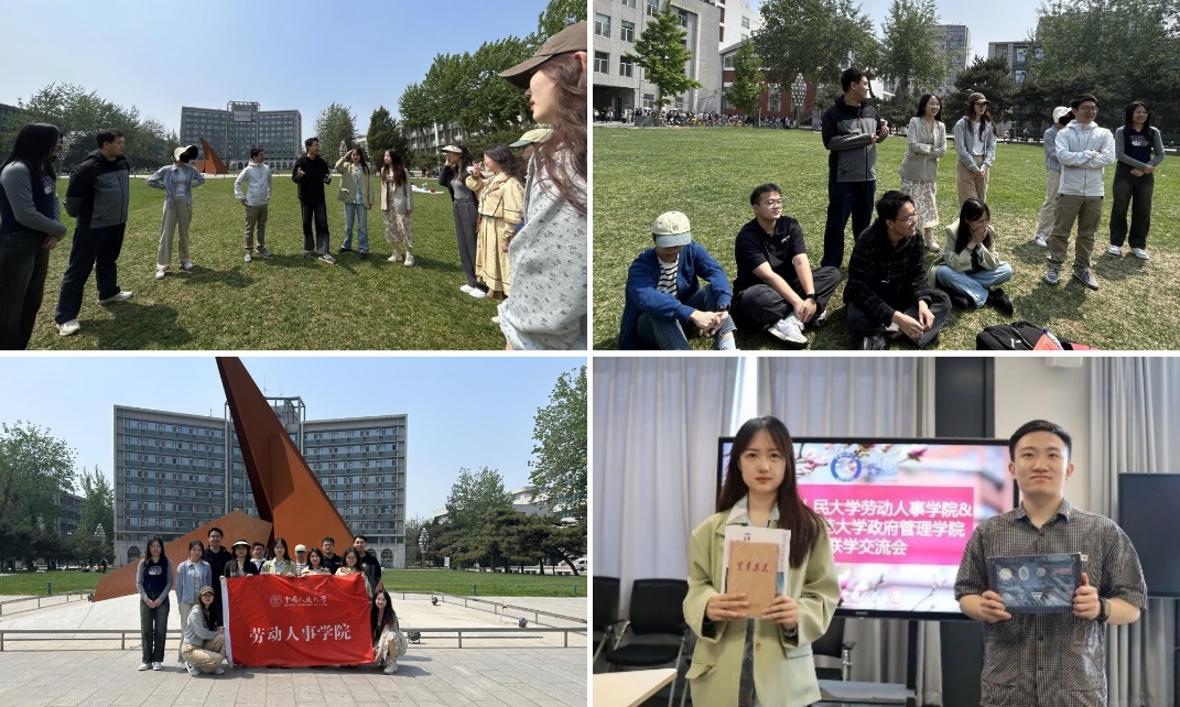 在座谈交流、拓学活动后,两院代表互相交换了公司纪念品,且继续开展了户外研学活动及草坪联谊活动。在人大劳人院代表的引导介绍下,两院与会同学依次参观了立德楼、求是楼、人文楼、校史馆等人大地标建筑,并且在教二草坪开展了生动、有趣的集体游戏,充分增进了两院同学们彼此之间的认识,拉近了院际间的距离,埋藏下两院深厚友谊的春苗,同时也为两院与会同学留下了深刻的春日回忆。