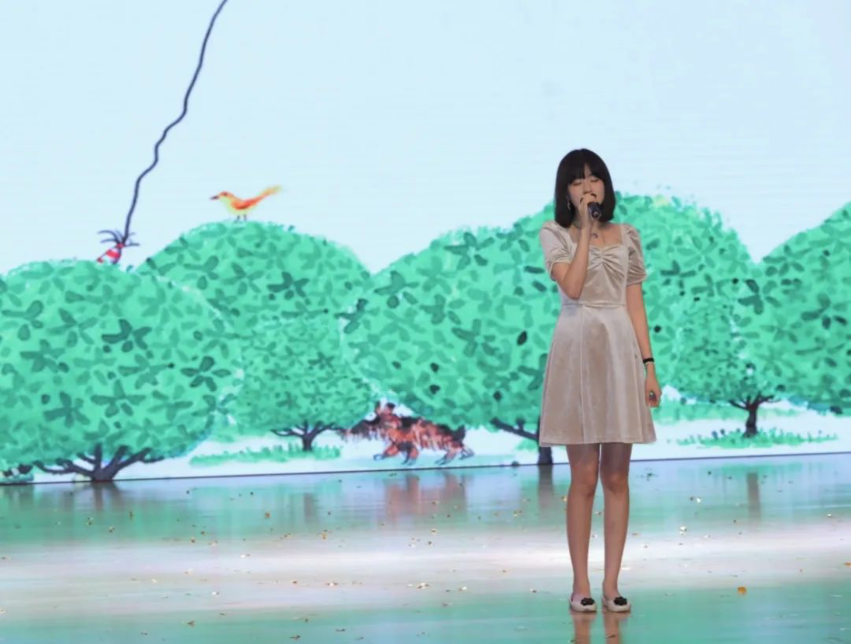 2021年校园歌手大赛十佳歌手、商公司2019级本科生曾宇晨带来独唱歌曲《稻香》。舒缓的旋律让大家回忆起过往点滴,轻柔的歌声讲述着我们共同的故事。