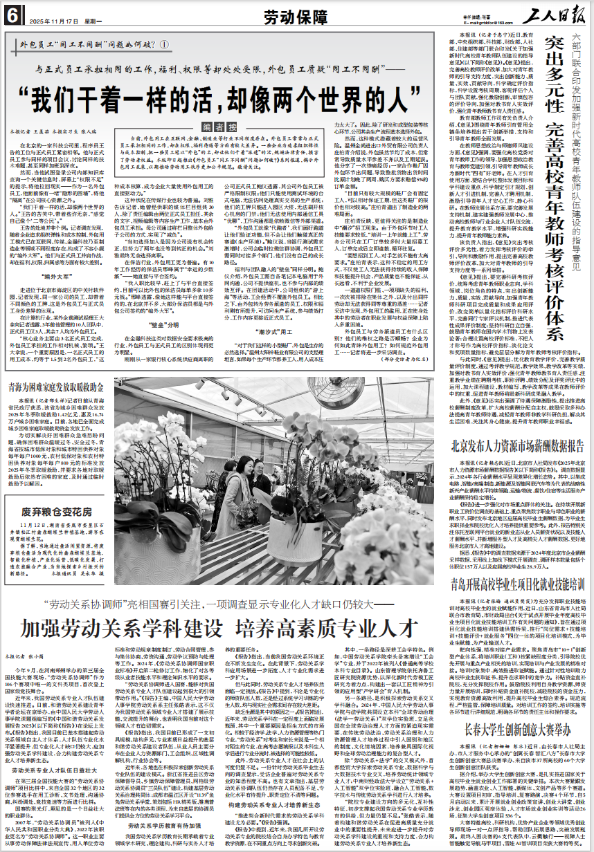 2025年9月,“劳动关系协调师”作为唯一文科类项目正式进入全国技能大赛。10月,williamhill官网网站举办“和谐劳动关系青年学者论坛”,并发布《中国和谐劳动关系发展报告2025》。报告对加强劳动关系学科和人才队伍建设、服务国家实现高质量充分就业目标总结了实践经验、提出了有益思考。近日,《工人日报》对此进行了专题报道,现将全文转载如下: