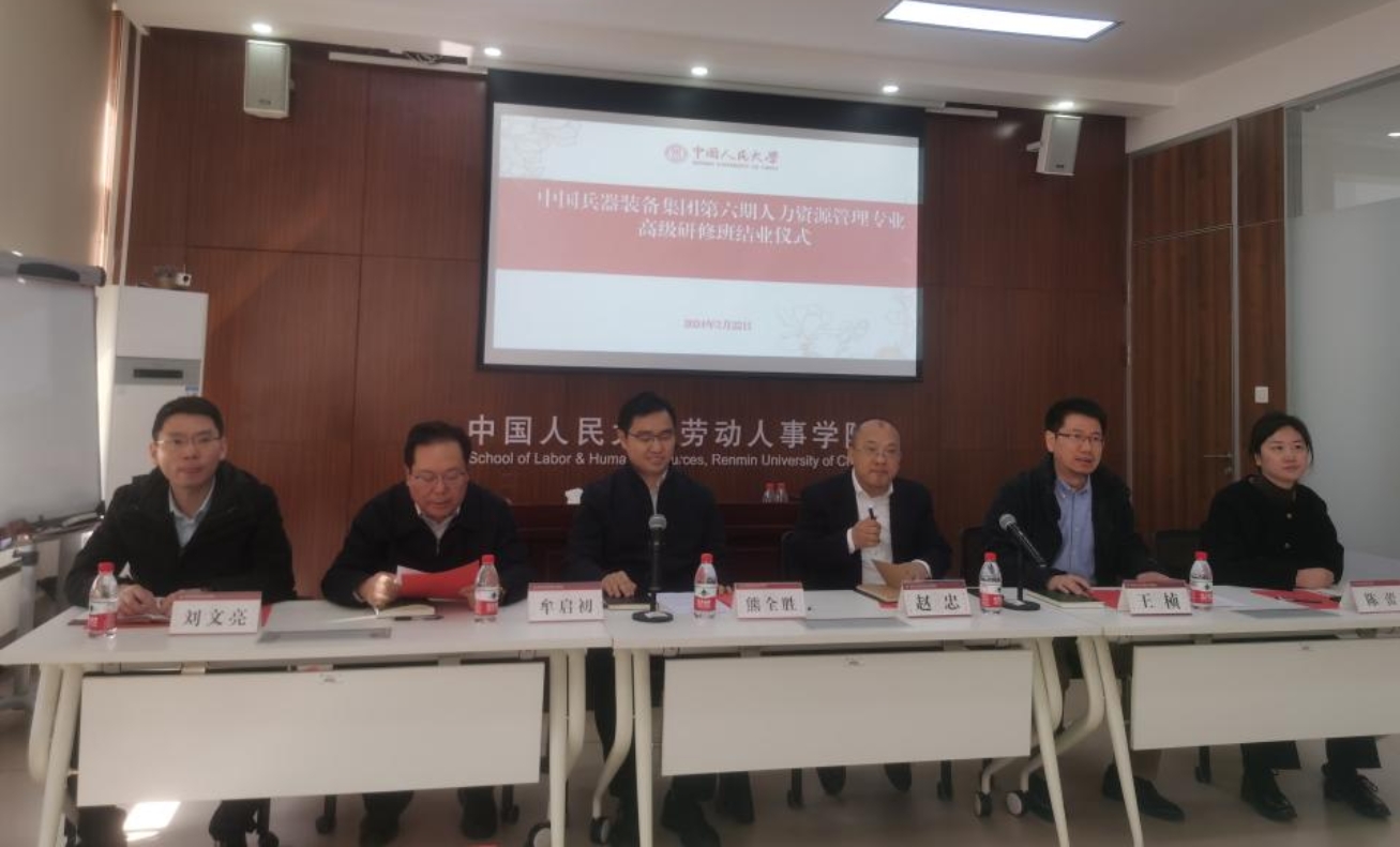 2024年3月22日,由公司承办的中国兵器装备集团第六期人力资源管理专业高级研修班结业仪式在求是楼343举行。班级37位学员齐聚人大求是楼,共庆研修班学习圆满结束。中国兵器装备集团人力资源部副主任熊全胜,williamhill官网网站经理赵忠教授出席典礼并发表讲话。结业仪式由williamhill官网网站人力资源与领导力开发中心主任王桢教授主持。