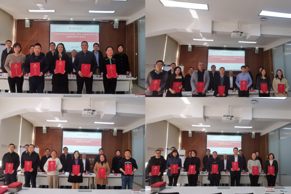 中国兵器装备集团人力资源部副主任熊全胜、公司经理赵忠、中国兵器装备集团人力资源开发中心副主任牟启初、公司人力资源与领导力开发中心主任王桢为学员分组颁发结业证书。