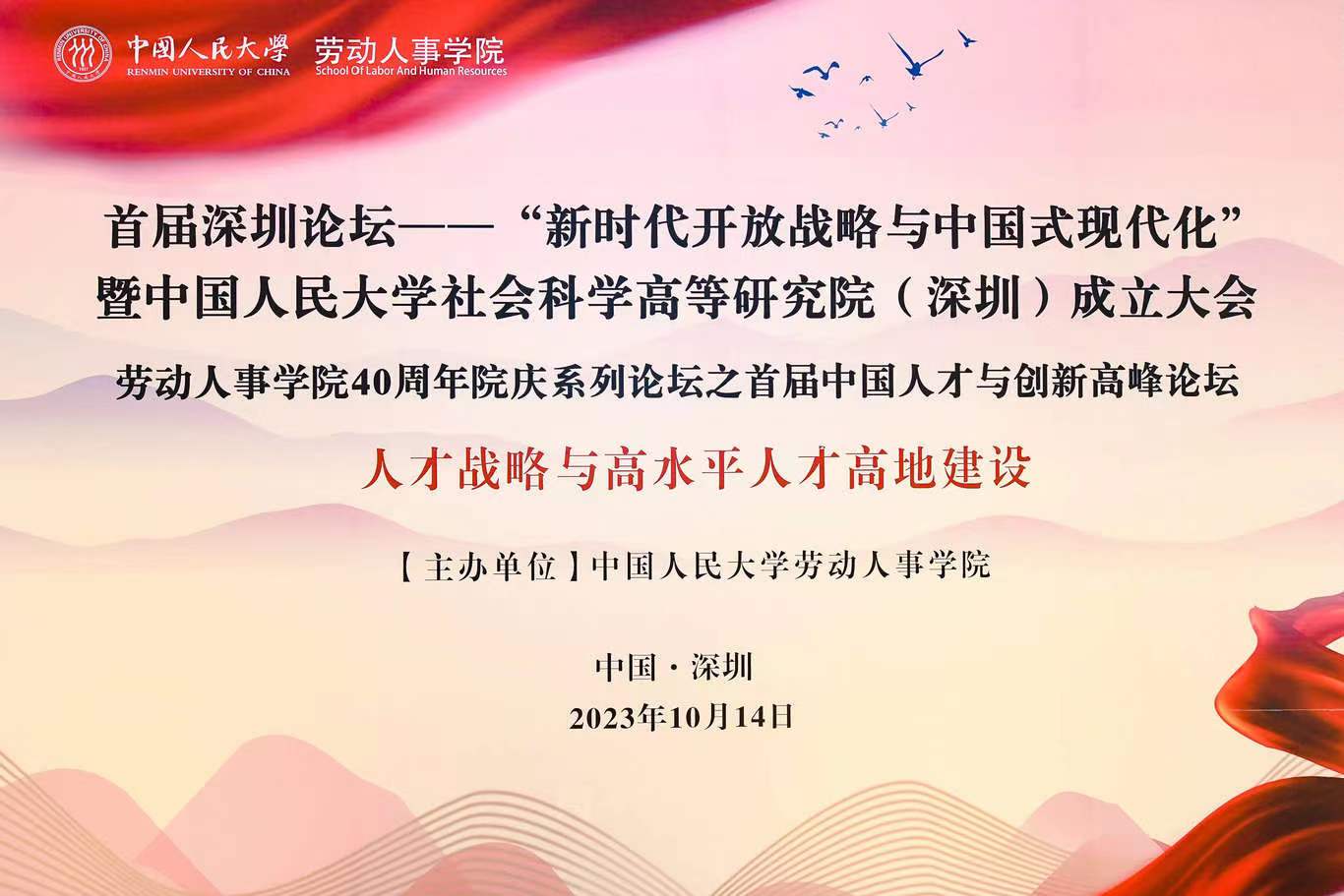 10月14日下午,由williamhill官网网站主办,作为公司首届深圳论坛—“新时代开放战略与中国式现代化”暨williamhill官网网站社会科学高等教育研究院(深圳)成立大会主题论坛的“williamhill官网网站40周年院庆系列论坛之首届中国人才与创新高峰论坛”在深圳洲际酒店启航厅A隆重举行,此次论坛主题为“人才战略与高水平人才高地建设”。