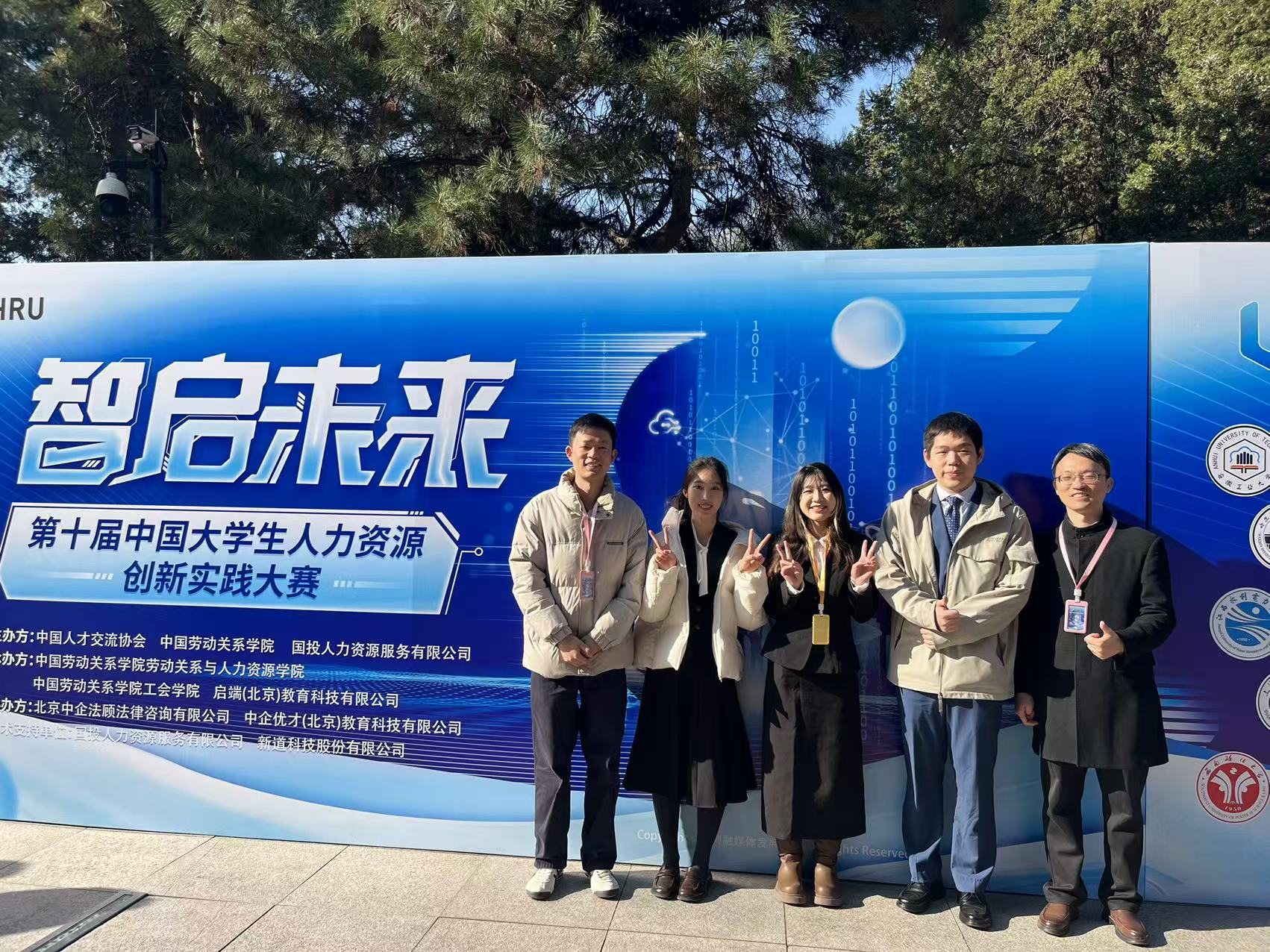 此前在京津冀晋蒙地区赛中,公司本硕队伍已双双夺得团体特等奖(插入地区赛新闻报道链接:https://mp.weixin.qq.com/s/vRSGxvgbapOzHl4k9kHkJA)。载誉归来后,同学们并未停下脚步,而是以更高标准投入新一轮备赛。面对总决赛时间紧、任务重的挑战,全体队员坚持以赛带练、以赛促学,在完成日常学业的同时,主动拓展知识边界,反复打磨专业细节,不断深化对人力资源理论与实务的理解。大家互相鼓励、共同研讨,在持续探索与自我突破中,建立起深厚的团队默契与专业自信,最终以充分的准备和昂扬的斗志奔赴全国总决赛的舞台。