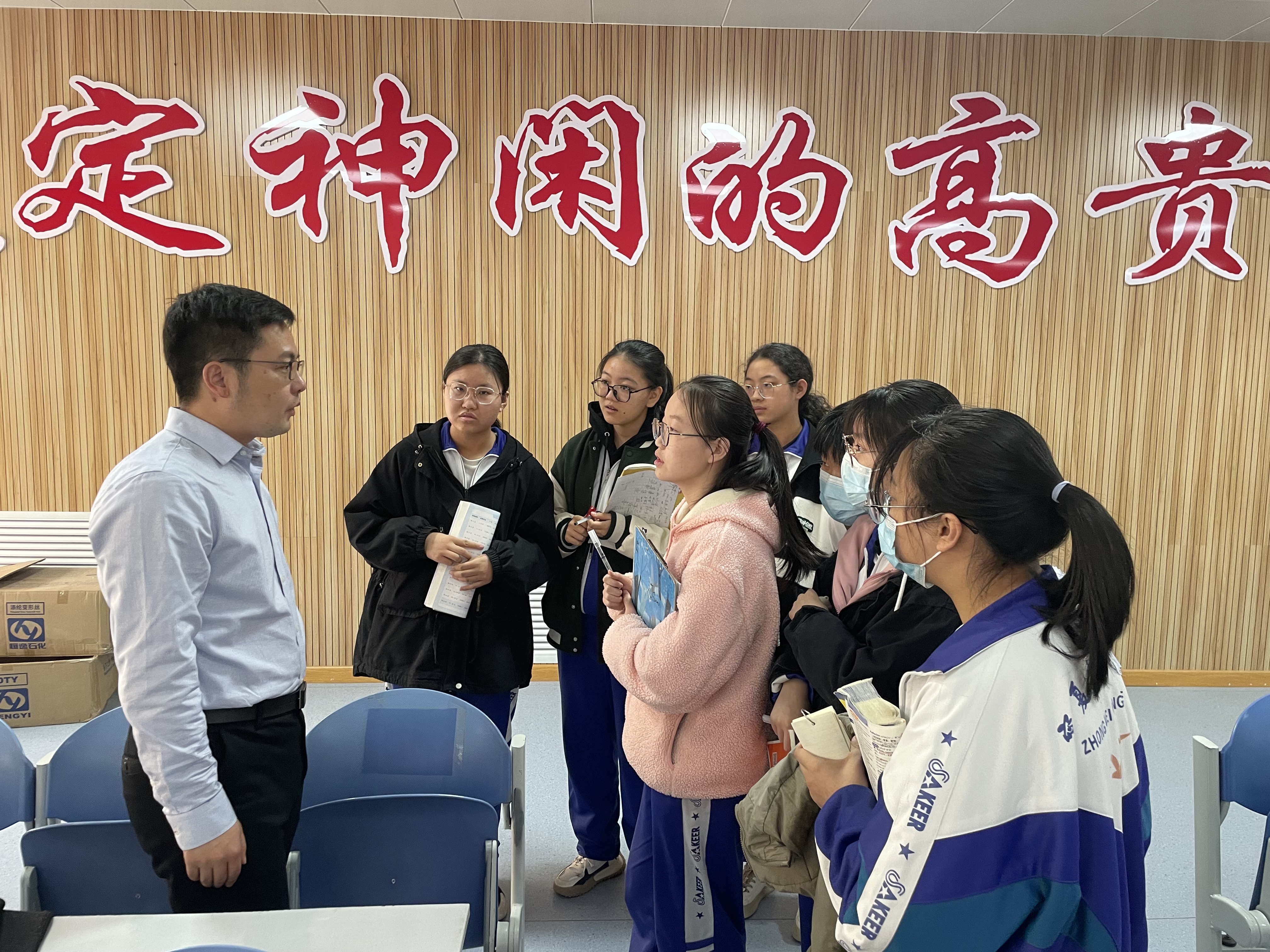 王鸿飞以“从心理学视角谈高中学习与生涯规划”为题,从“动机、情绪、归因”三个关键词谈高中学习,从“科技、人、创新”三个关键词谈生涯规划,并将党的二十大精神和人大精神贯穿其中,帮助同学们寻找学习“心流”,树立理想信念。