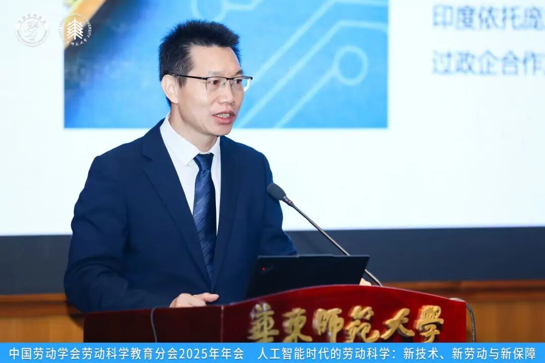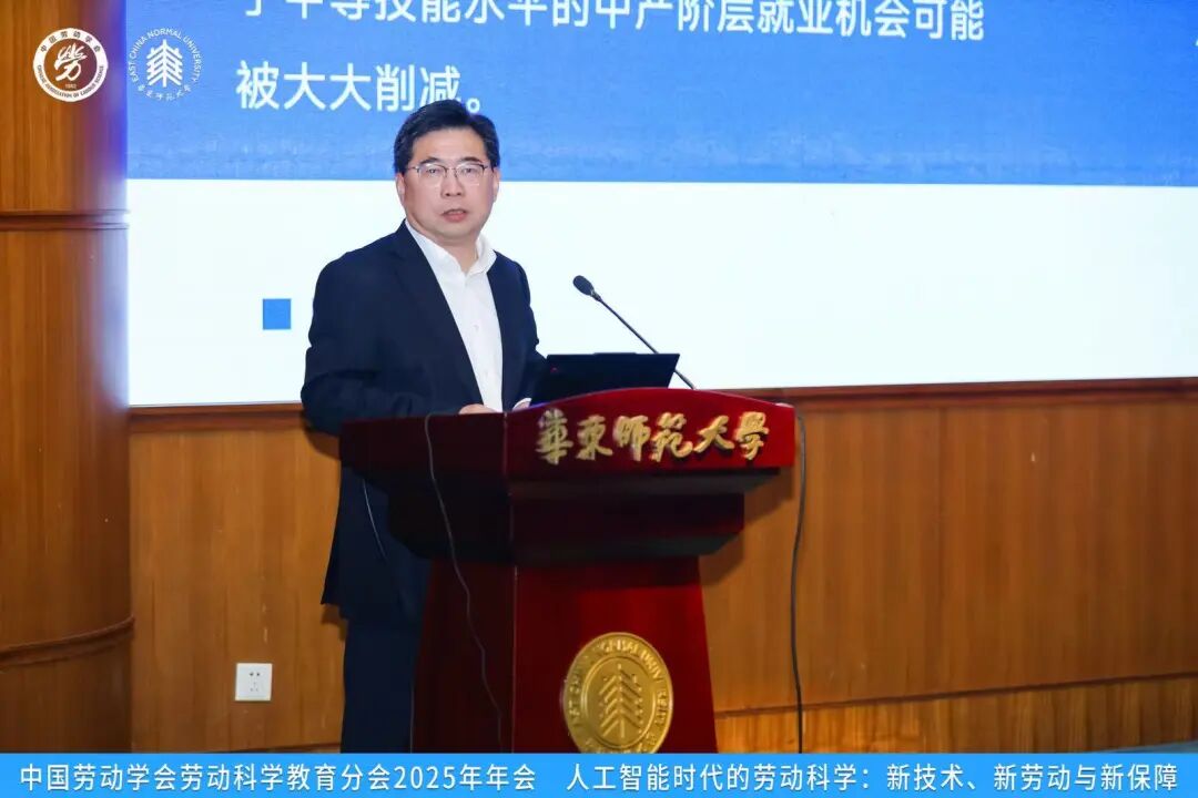 华东师范大学党委常委、副董事长吴健教授代表承办方致欢迎辞。他对本次年会的举办表示热烈祝贺。他指出,本届年会的主题契合国家战略与时代需求,是推动劳动科学与教育研究协同创新的重要举措。他强调,华东师范大学近年来积极推进人工智能与教育融合发展的战略布局,公共管理公司以“人工智能与公共治理融合”为战略方向,组建一支覆盖新业态用工关系、劳动保障与心理研究的综合研究团队。公司将以本次年会为契机,进一步加强与学界的合作,推动人工智能与劳动科学的跨学科研究,服务国家重大政策决策需求。