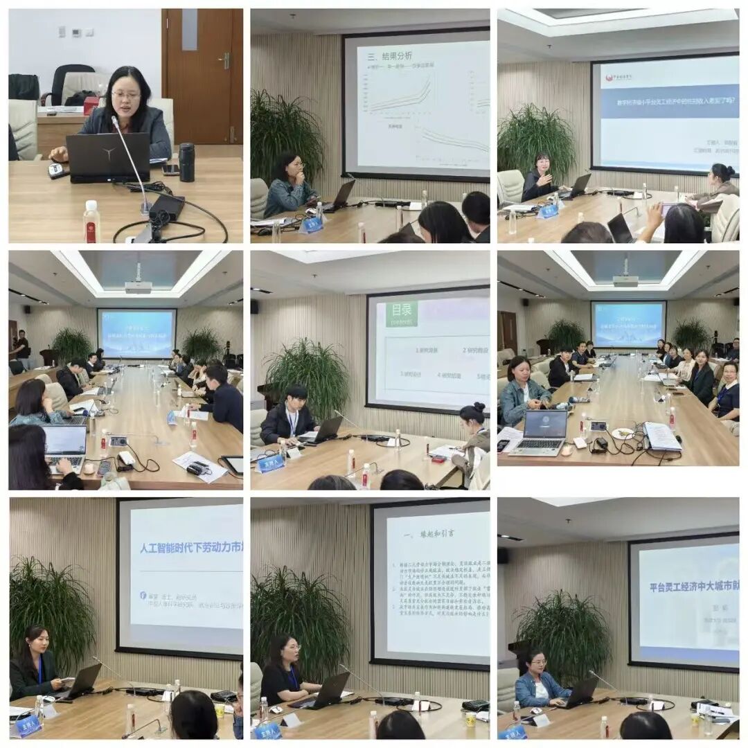 本届年会经组委会专家严格匿名评审,遴选出45篇高质量论文交流发言,分6个平行论坛进行现场报告,主题覆盖“人工智能时代的就业与劳动力配置”“AI冲击下的就业质量与收入分配”“新就业形态劳动者福祉与制度创新”“数字时代的民生与社会保障”“数智时代的人力资源管理与组织创新”“制度变迁中的人力资本积累与劳动关系”等前沿议题。在平行论坛中,论文作者们进行了成果汇报,与会学者就论文的选题意义、理论基础、方法设计和政策涵义等进行深入点评和交流。
