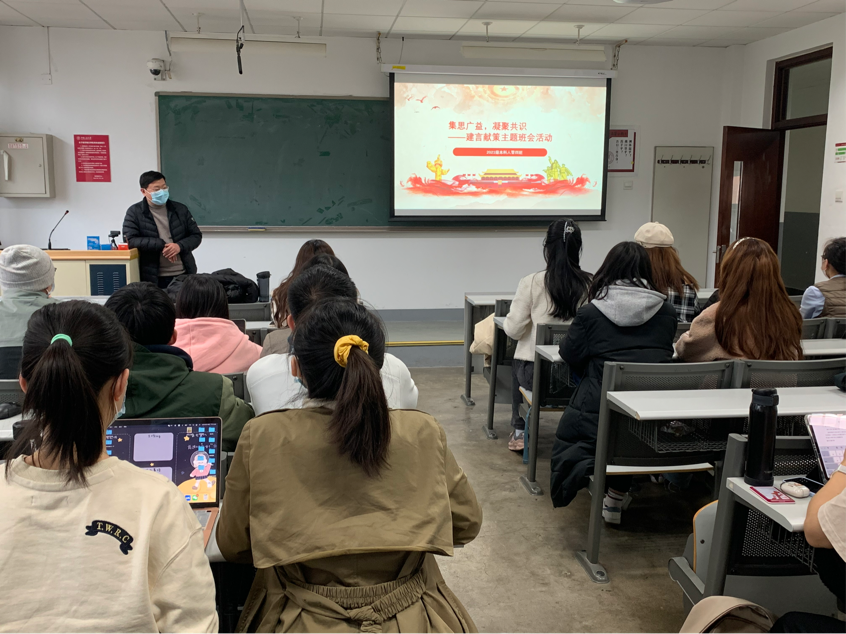 班级辅导员贾思淼介绍了“建言献策”活动的具体要求。她鼓励同学们积极参与本次建言献策活动,围绕“培养什么人、怎样培养人、为谁培养人”这一根本问题,从加强和改进公司党的领导和党的建设、加强师生思想政治工作、落实立德树人根本任务、推进“双一流”建设、内部建设与管理、社会服务与合作交流以及提升师生员工满足感获得感幸福感等方面进行深入思考,开展讨论。