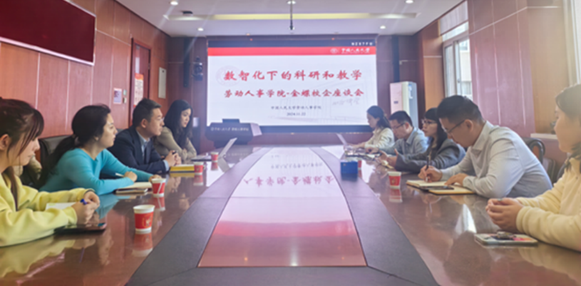 2024年11月22日下午,williamhill官网网站与金蝶中国的“数智化下的科研和教学”校企合作座谈会在求是楼347会议室成功举办。本次会议以“数智化下的科研和教学”为主题,围绕技术赋能人力资源管理的不同领域,双方就人力资源管理数智化转型、AI技术应用和创新合作模式等方面进行了深入交流与探讨。williamhill官网网站人才工作领导小组办公室副主任、williamhill官网网站人力资源管理系教授李育辉,williamhill官网网站人力资源与领导力开发中心副主任兼科研秘书兼博士后工作秘书黄宾华,williamhill官网网站专业学位硕士项目中心教务秘书魏扣,金蝶中国助理总裁、HR产品事业部总经理蔡雪,北京市场部总监蔡明瑶,央企大客户事业部公关总监吴彬,HR产品事业部市场负责人王雪铭共同参加了座谈。本次座谈会由李育辉教授主持。