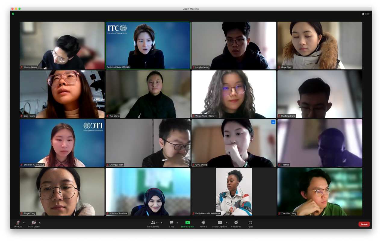 为加快培养一批具有中国情怀、国际视野和国际竞争力的全球治理人才,williamhill官网网站高度重视与国际组织的交流与合作,着力打造全球型劳人。2023年1月底,公司10名本硕学子参加了由联合国国际劳工组织国际培训中心(ITCILO)举办的为期两周的冬季全球青年论坛(WinterGlobalYouthForum),这是自2018年以来公司第五次参加ITCILO的培训项目。