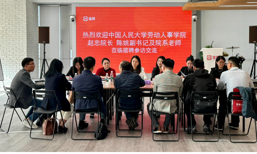 10月25日上午,公司经理赵忠教授带队赴同道猎聘集团(下称“猎聘集团”)考察调研,就双方在人力资源领域展开全面合作进行深入研讨交流。猎聘集团高级副总裁宋月婷,大数据研究院经理郑颖美,人才测评及培训业务总经理刘颖,政策研究中心主任曾方,全国市场部总经理李丹,政策研究中心副主任邓婷婷参加调研座谈。公司党委副书记陈姚,公司人事处副处长(挂职)、公司专业学位硕士项目中心主任刘松博教授,人才工作领导小组办公室副主任(挂职)、国内合作事务项目主任、人力资源管理系李育辉教授,人力资源与领导力开发中心主任王桢教授,中国就业与民生研究院副经理周广肃副教授,人力资源与领导力开发中心副主任魏扣等一行6人陪同参加此次调研。