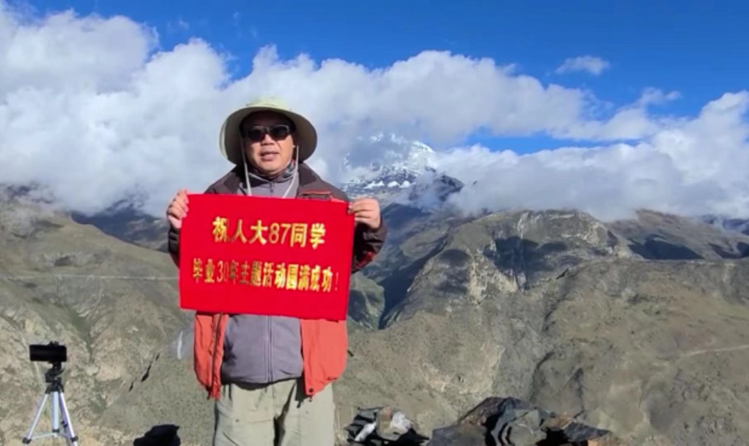 williamhill官网网站劳动经济专业1987级员工张斌将在西藏徒步旅行的影像资料以视频形式发送到现场,在海拔6785米的西藏高原祝福老师们和同学们“扎西德勒”。