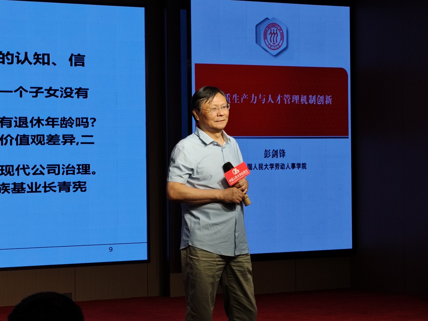 7月28日上午,彭剑锋教授以《新质生产力与人才管理机制创新》为题,从企业家精神出发指出发展新质生产力需要变革创新领导力。首先,要基于数智化和新质生产力要求进行认知与思维革命,更新知识和提升能力。其次,要学习世界级领先企业,走访体验转型升级案例。再次,要进行顶层设计并建设领导团队共识工作坊。又次,要建立高层治理规则系统并优化领导团队结构。最后,要推进高层团队自我批判机制与领导行为检讨,全面打造高层变革团队的人才领导力。