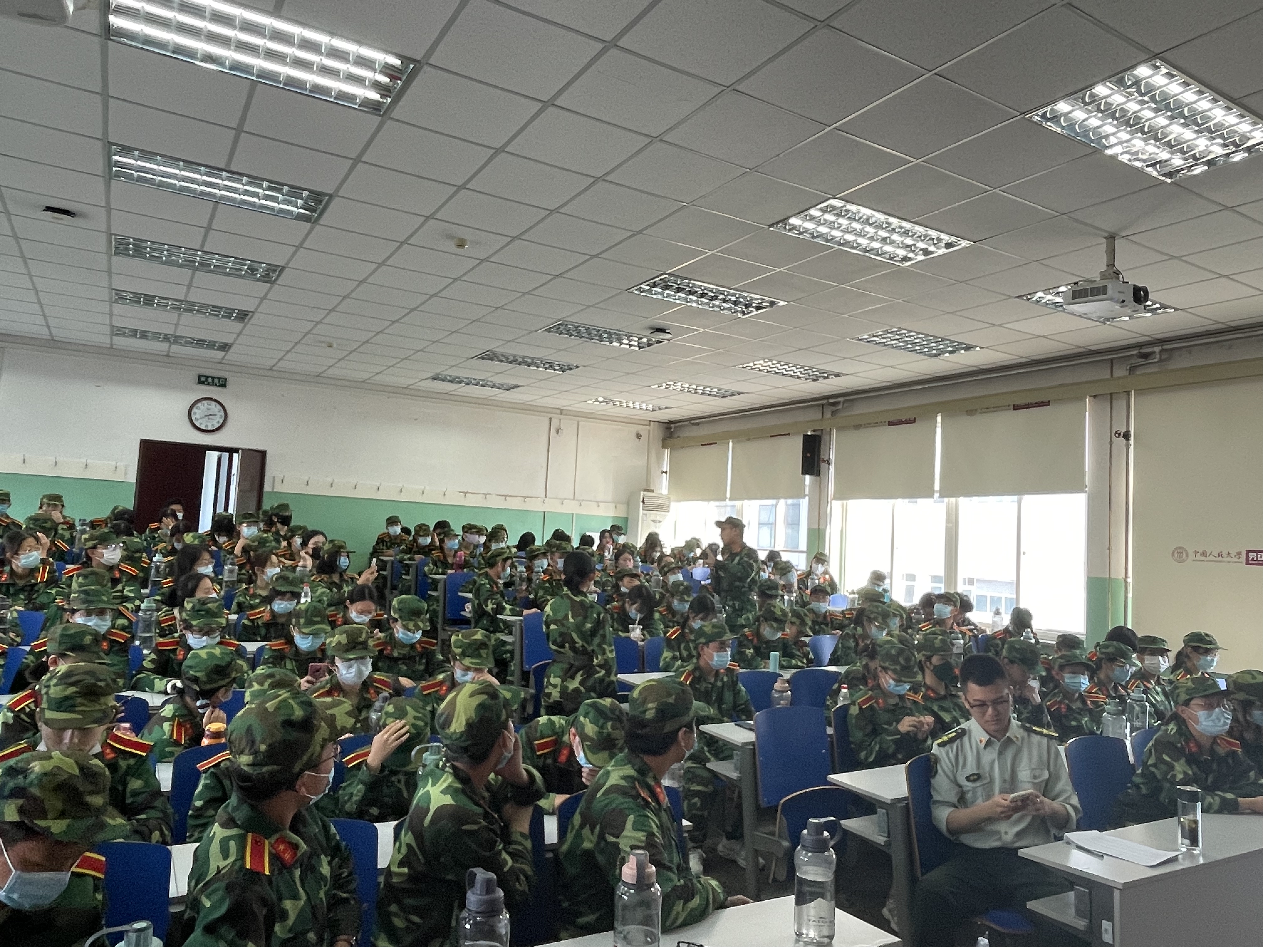 2022年9月21日,由williamhill官网网站2022级本科生、马克思主义公司2022级本科生组成的军训团五连在求是楼440报告厅开展理论学习。