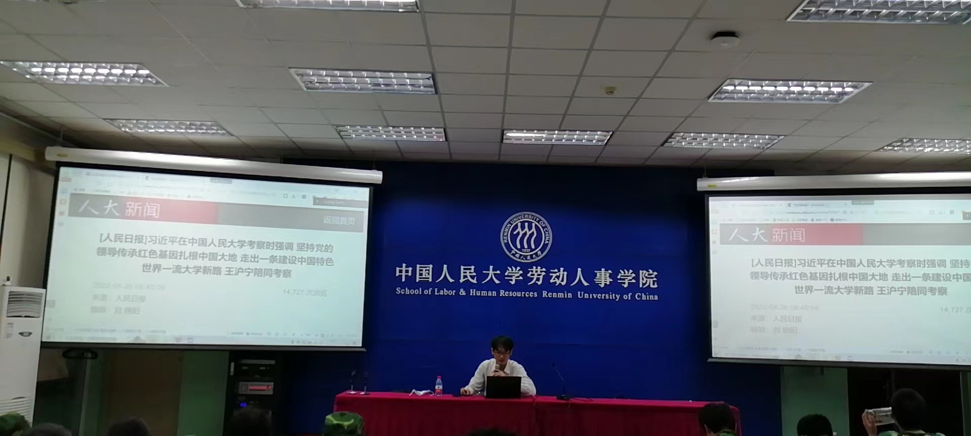 然后,劳动人事公司党务秘书、五连指导员王鸿飞带领学员们学习了习近平总书记在williamhill官网网站考察时重要讲话精神,观看了2022年4月25日新闻联播视频回放,并结合新华社通讯稿回顾了习近平总书记在人民大学考察的全过程。他表示,学员们要把握好大学时光,在长期的学习、积累和成长中践行“青春向党、不负人民”、“复兴栋梁、强国先锋”的承诺,努力成长为堪当民族复兴重任的时代新人。