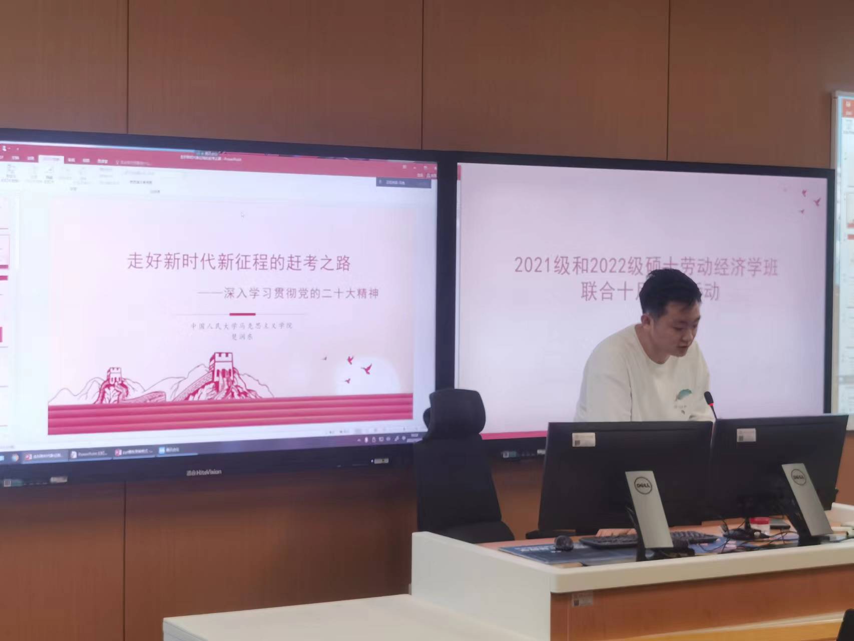 会议进行第一项议程,马克思主义公司博士生宣讲团讲师楚润东作“走好新时代新征程的赶考之路——深入学习贯彻党的二十大精神”的主题宣讲。