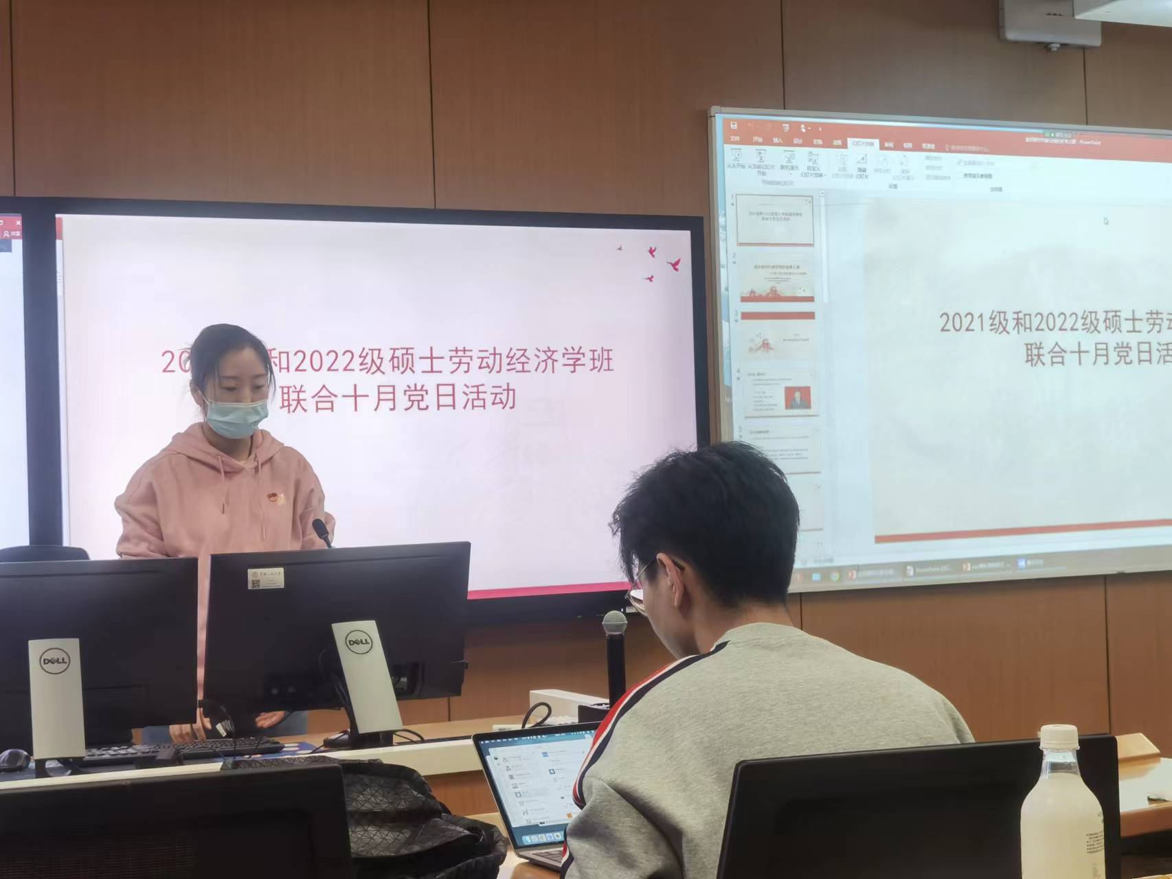 会议进行第二项议程,2022级硕士劳经班宣传委员杜艺璇对公司第十五次党代会的基本情况进行介绍,带领大家学习本次会议主题、会议流程、党委工作报告等。