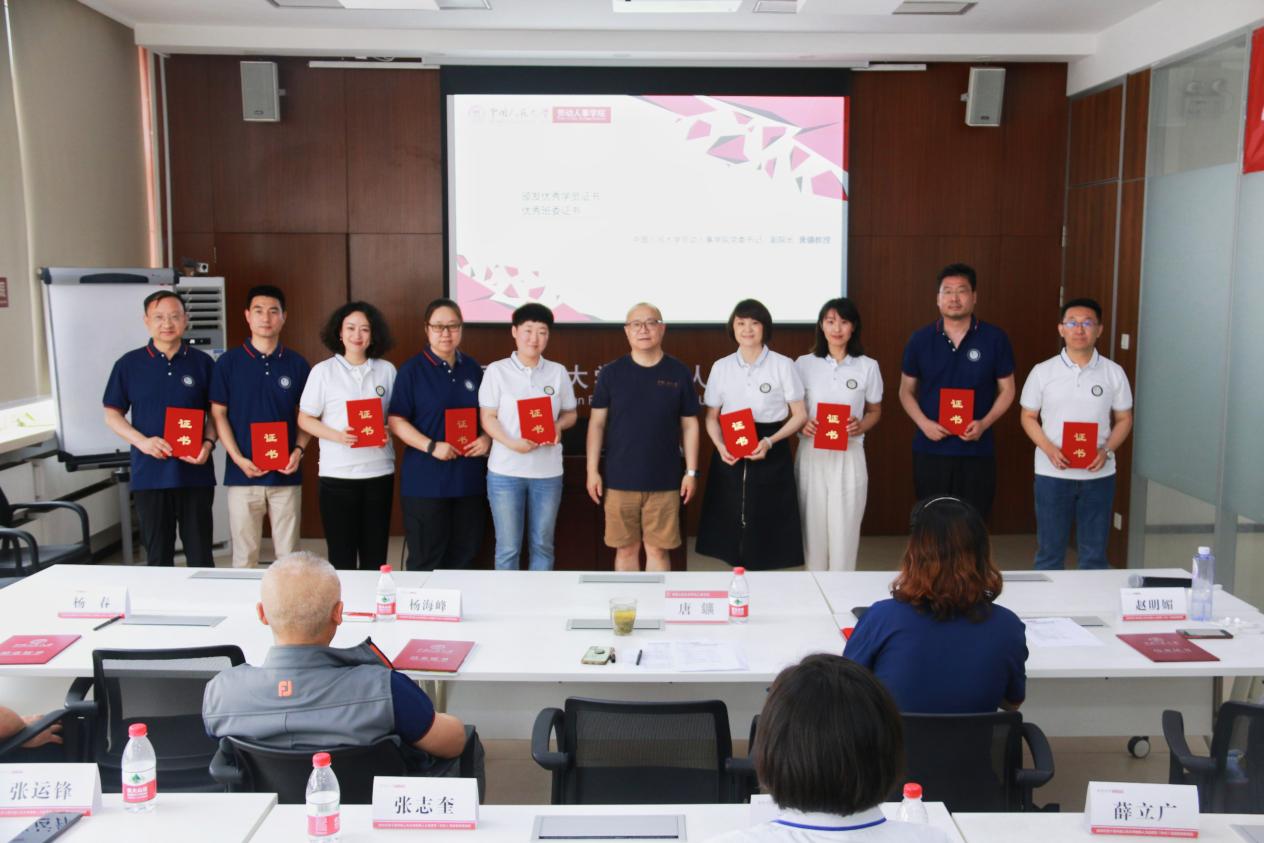 随后,张丹丹老师宣读了结业学员名单,介绍优秀学员、优秀班委的评选规则,宣读了获奖人员名单,并感谢各位班委为班级提供的课后活动以及各项事务的精心安排和组织。唐鑛书记为到场学员颁发了结业证书,并为荣获“优秀班委”“优秀学员”奖项的学员颁发荣誉证书。