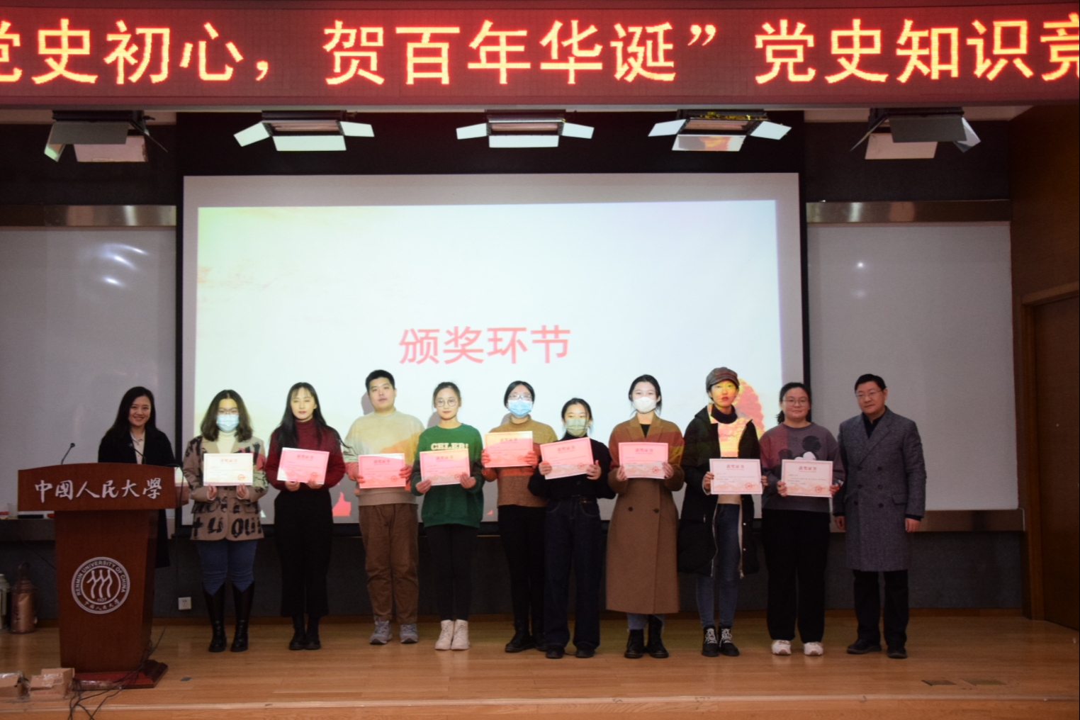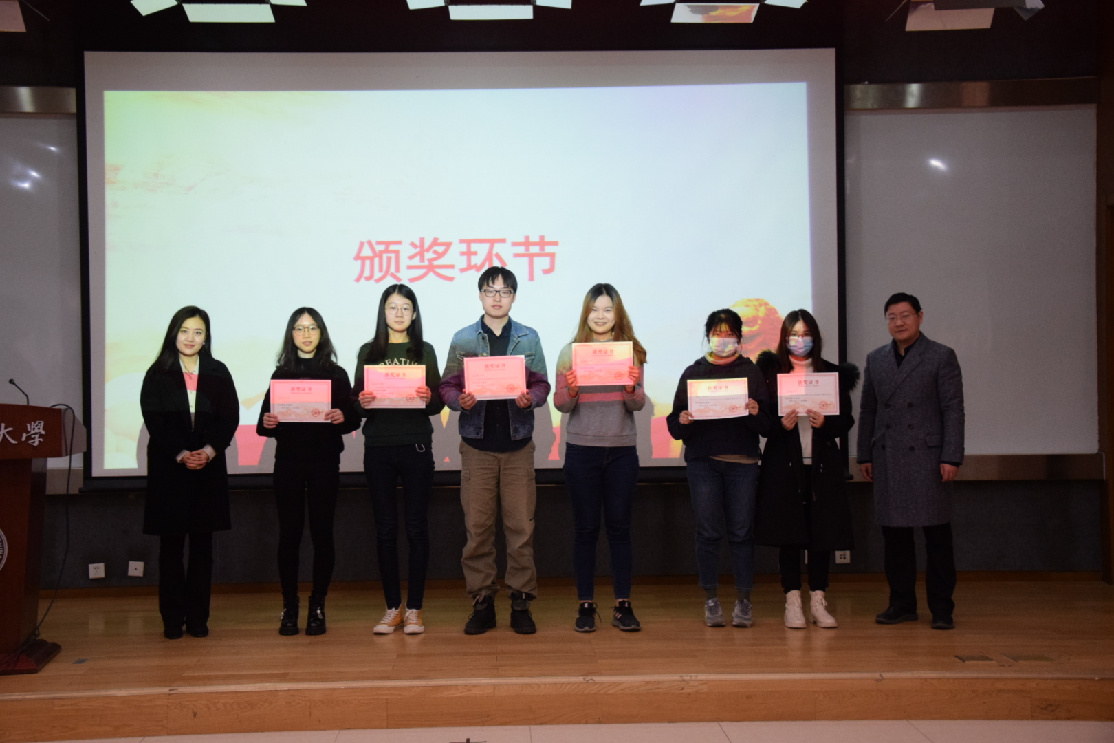 比赛环节结束后,主持人宣布了本次党史知识竞赛决赛的获奖情况。党委副书记吴自强老师、党委委员郭瑜老师为获奖队伍颁奖。
