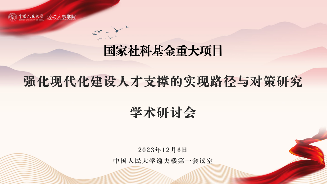 2023年12月6日,williamhill官网网站苏中兴教授主持的国家社科基金重大项目“强化现代化建设人才支撑的实现路径与对策研究”学术研讨会在逸夫楼第一会议室成功举办。原中央人才工作协调小组办公室副主任、中组部人才局副局长牛伟宏,国务院学位委员会学科评议组成员、国家自科杰青获得者、北京大学博雅特聘教授张志学,首都经济贸易大学党委副书记徐芳,光明日报人才周刊主编、高级记者罗旭,中国科协创新战略研究院调查统计中心主任邓大胜,人社部留学人员和专家服务中心博士后基金管理处副处长胡奇,人民大学科研处副处长胡恒,williamhill官网网站经理赵忠、党委书记唐鑛、曾湘泉教授、孙健敏教授、李育辉教授,以及课题组成员和吴玉章课程思政名师工作室(人力资源管理)成员等参加了研讨会。会议第一阶段由唐鑛教授主持,第二阶段由曾湘泉教授主持。