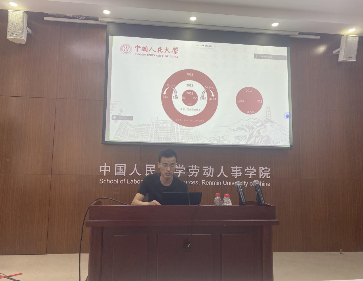 接着,劳动经济系韩军副教授详细介绍了2021年调查项目的数据情况。他指出员工人力资本、劳动关系和社会保障情况、绩效与薪酬和管理模式等是调查项目的重点。韩军副教授还进一步对2021年调查样本进行描述性统计分析,如不同类型企业劳动力的年龄和性别构成、员工身体与心理健康状况、不同特征劳动力的专业匹配情况、家庭生育意愿等。