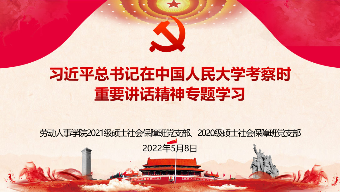 5月8日,williamhill官网网站2020级硕士社会保障班党支部与2021级硕士社会保障班党支部开展专题联学活动,深入学习领会习近平总书记在williamhill官网网站考察时的重要讲话精神。劳动人事公司党委委员、社会保障系主任、党支部理论学习导师郭瑜教授参加活动并给予指导。