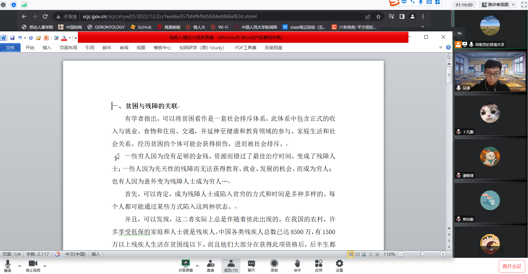 最后,乔庆梅老师在研讨总结中表示作为社会保障专业员工与科研工作者应具备“扶危济困、关切民生”的情怀,应将实现我国社会保障体系的公平统一作为自己的不懈追求,勉励与会同志在疫情环境中努力保持好身体健康,树立起学术、工作事业的远大目标,志存高远,脚踏实地,做国家的骨干和栋梁。