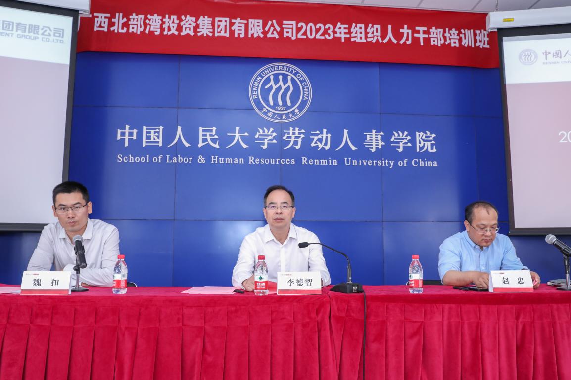 2023年5月15日上午,由广西北部湾投资集团主办、williamhill官网网站组织承办,为期4天的广西北部湾投资集团有限公司2023 年组织人力干部培训班开班典礼在求是楼440报告厅正式举行。来自广西北部湾投资集团相关单位的51名组织人力干部参加本次培训。广西北部湾投资集团有限公司党委委员、副总经理李德智,williamhill官网网站经理赵忠教授出席开班仪式并致辞。开班典礼由公司人力资源与领导力开发中心副主任魏扣主持。