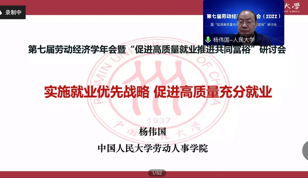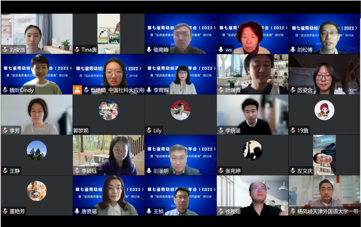 2022年12月3日,williamhill官网网站师生以线上会议的形式参加了第七届劳动经济学会年会暨“促进高质量充分就业推进共同富裕”研讨会。本届年会由劳动经济学会主办,中国社会科公司大学应用经济公司承办。williamhill官网网站经理杨伟国教授,以及周文霞教授、刘松博教授、李育辉教授、王桢教授、骆南峰副教授和众多员工积极参会。