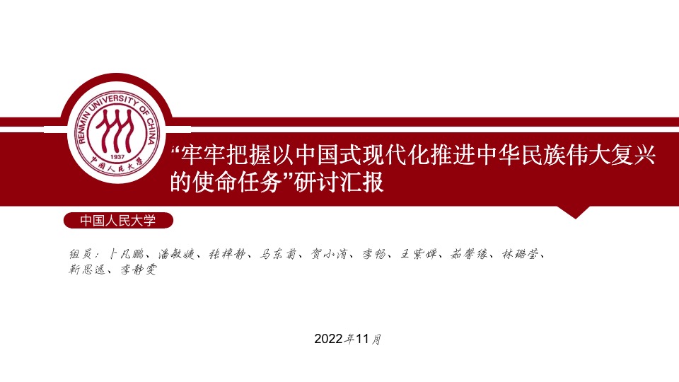 11月10日至26日,公司党校组织学员进行以“牢牢把握以中国式现代化推进中华民族伟大复兴的使命任务”为主题的研讨,学员通过回顾党的百年奋斗重大成就和历史经验,同时从二十大报告中感悟真理、汲取伟力,谈体会、话担当,分享了青年党员如何学习党的二十大会议精神,为实现中国式现代化和中华民族伟大复兴的接力赛贡献力量的思考,并在最后一次党课上对小组研讨内容进行了汇报展示。