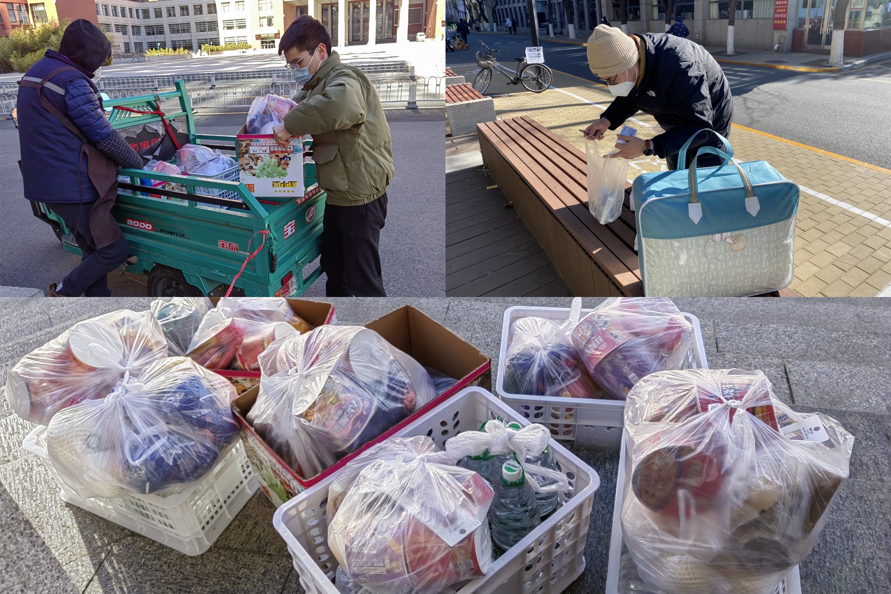 知行五楼的志愿者为各楼层和宿舍配发物资,扛住了先后三次全楼封控的压力,守住一方平安;部分志愿者进驻公司办公室,在各科室老师远程指导下为师生继续办理业务,保证了公司工作的正常运转;还有志愿者在寒风中为隔离员工配送物资,为师生递送材料……