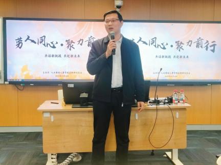 随后,胡涛副经理登台致辞。他首先系统介绍公司近期发展规划与团队建设成果,随后聚焦 “人工智能对劳动力市场的影响” 展开深度分析,提出前瞻性应对方向,即“在人工智能时代,我们不仅要学会与AI共生,更要抓住那些无法被技术复制的人类独特价值——通过终身学习不断拓宽认知边界与社交圈层,持续投资于自我能力的提升。”他同时强调:希望加强员工之间的真实联结、促进人与人的深度交流,正是应对技术洪流中不可或缺的人文基石。