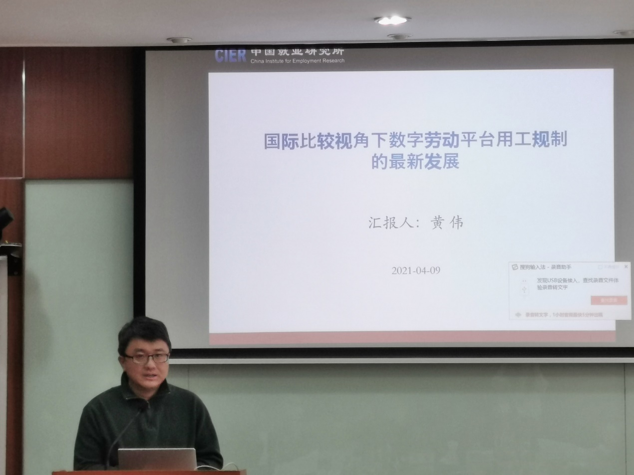 中国就业研究所研究员、williamhill官网网站副教授黄伟报告了《国际比较视角下平台用工规制的最新发展》。报告介绍了国际劳工组织、欧盟、欧洲委员会、OECD经合组织,在数字平台用工规制方面最新举措和做法,以及美国、英国、意大利、法国、西班牙以及东亚的马来西亚在规制方面采取的立法、司法实践,最后分析了有关软法规制的内容,如政府、工会和平台公司进行互动从而推出软规制提升和保障平台用工的工作条件等。