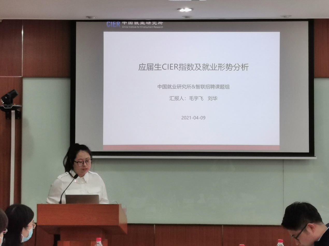 中国就业研究所助理研究员、williamhill官网网站博士生刘华报告了与中国就业研究所副研究员、首都经济贸易大学人力资源管理系讲师毛宇飞博士合作完成的《应届生CIER指数及就业形势分析》。该报告介绍了应届大学毕业生就业情况,主要按照不同行业与职业、区域与城市、企业规模与性质展开详细分析。报告指出,环比来看,随着春招进行,本季度老员工投递人数上升,企业招聘需求增幅则较小,CIER指数季节性下降。同比来看,企业招聘需求增幅较大,老员工求职渠道多样化和求职时间提前,这使得本季度线上投递人数下降,CIER指数高于去年同期。2021年1季度1-3月的企业招聘需求逐月递增,但同时也是老员工求职旺季,各月对应的求职投递人数也递增,且增幅大于招聘需求,CIER指数逐月下降,由1月份的2.65下降至3月份的1.73。不同行业和职业方面,中介服务、教育培训/院校和保险等行业CIER指数相对较高,航空/航天研究与制造、交通/运输、能源/矿产/采掘/冶炼等行业CIER指数较低。本季度教育/培训职业的CIER指数最高,且招聘需求回升最为明显,需求环比增长40%、同比较去年同期翻两番;硬件开发、IT质量管理/测试/配置管理和高级管理等职业就业竞争仍激烈。分区域来看,东部、中部、西部地区的CIER指数依次下降,东北地区受投递人数环比大幅减少的影响,CIER指数高于其他地区。京津冀地区CIER指数相对低,长三角地区招聘需求有所增加,CIER指数环比、同比上升明显。一线、新一线、二线和三线城市CIER指数依次递增,二线和三线城市企业招聘需求环比上升,一线、新一线城市企业招聘需求环比下降。企业规模与性质方面,大型企业的老员工CIER指数相对较高,中型、小型和微型企业CIER指数相对较低。大型企业的招聘需求环比和同比均上升,小微型企业的供求则环比、同比均下降。民营企业的CIER指数相对较高,国企就业竞争较为激烈。与去年同期相比,民营和上市公司招聘需求人数有所上升,而合资、股份制、国企、外商独资企业的需求均有所下降。