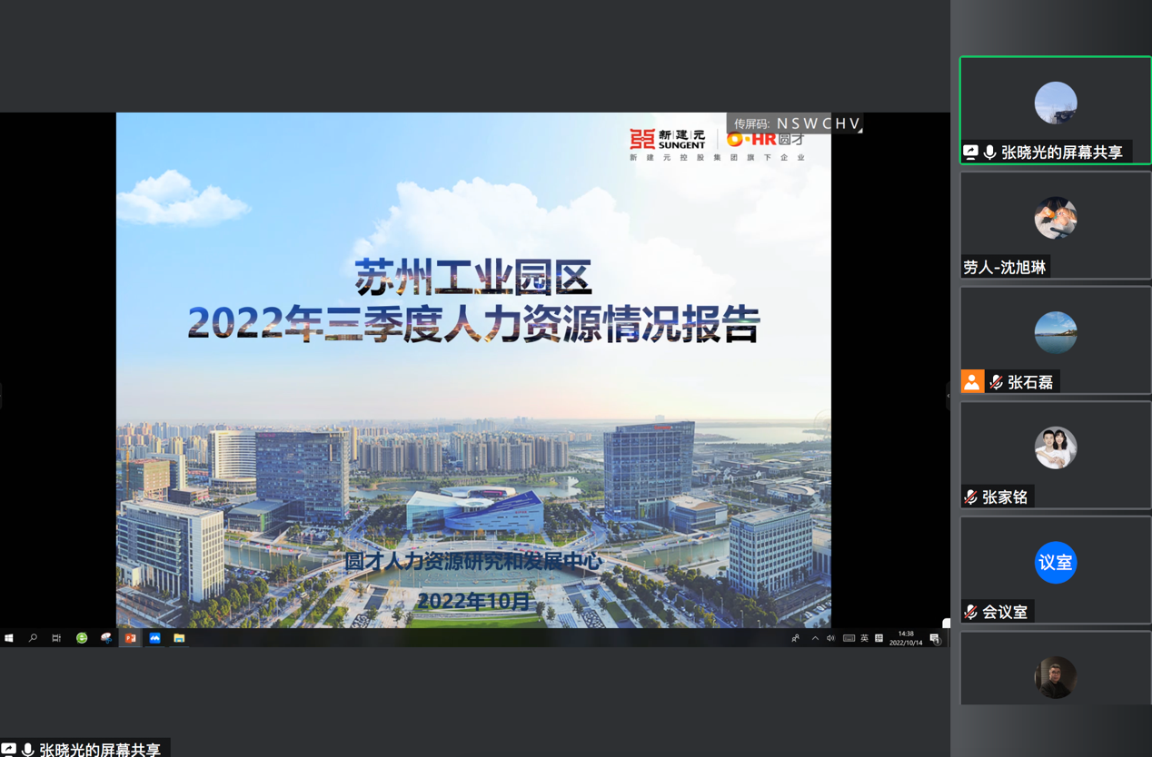 苏州工业园区人力资源开发有限公司副总经理张晓光作了《苏州工业园区2022年三季度人力资源情况报告》。该报告介绍了2022年第三季度苏州工业园区人力资源情况及变动趋势。在需求方面,2022年三季度需求指数为3842%,环比上涨0.87%。在供给方面,2022年三季度供给指数为493%,环比上涨1.9%。随着疫情得到有效控制,企业招聘和需求和人才供给量同时增加,人力资源市场调整基本完成。在求职匹配方面,2022年三季度园区人力资源匹配指数为62%,涨幅明显,2022年呈现持续上升态势,预计在疫情稳定的前提下,四季度匹配指数将平稳上升,突破2021年三季度最高水平(63%)。在应届生招聘方面,苏州工业园区对低层次的劳动力应届生需求大幅减少,对中高端人才需求量不断增大。生物医药作为园区主打的三大产业之一,其发展自2022年起遇到瓶颈,采用裁员、压编、更改招聘策略等降低人力成本的方法。最后,他介绍了员工福利的调研情况,2022年夏天有64%的企业发放了额外的高温福利,园区企业还采取多种防暑降温措施以应对高温天气,整体而言园区三季度的形势趋于稳定。