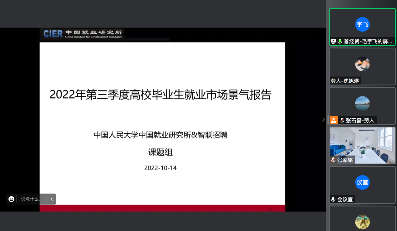 在主题发言和自由交流阶段,与会领导和专家围绕2022年第三季度就业形势进行了深入研讨。