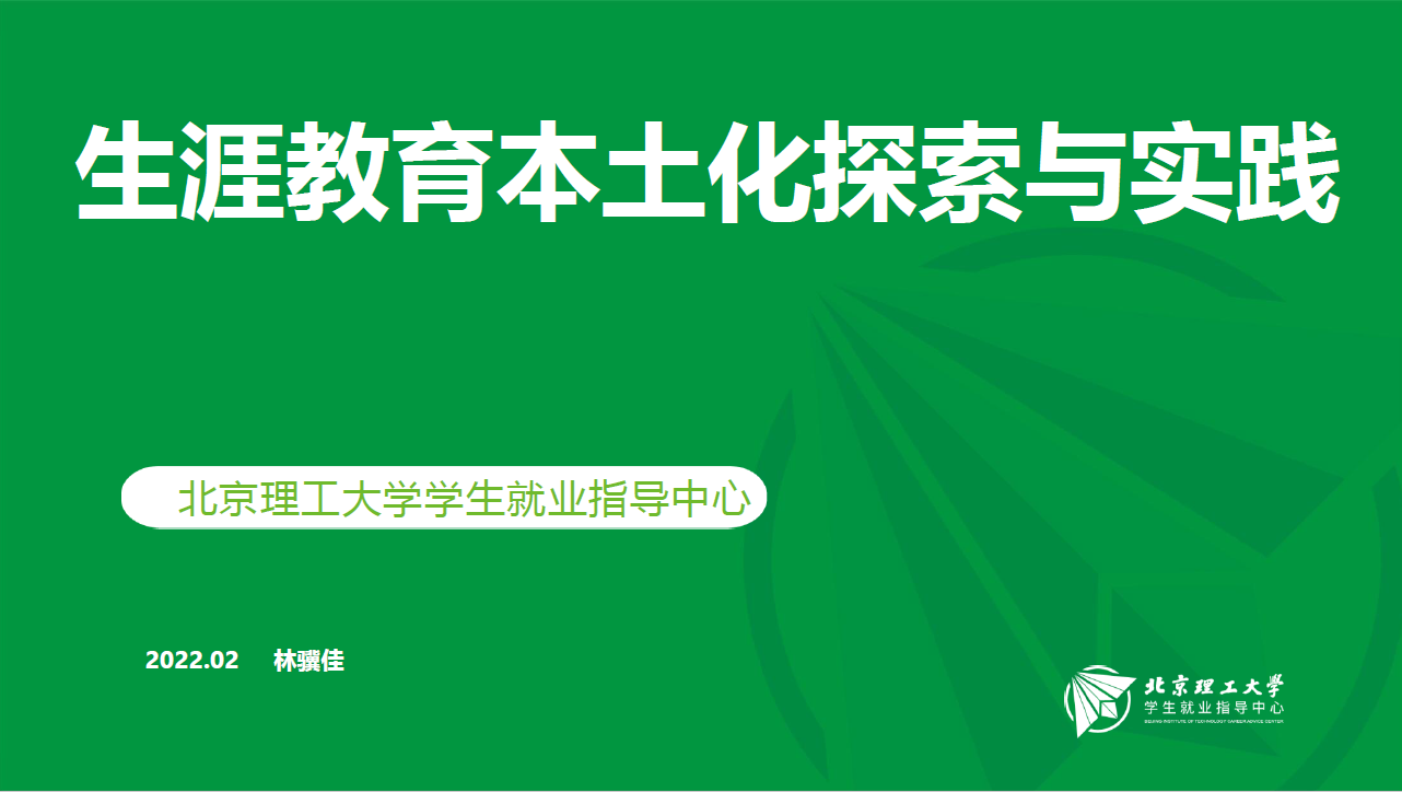 林骥佳老师的报告主题为“生涯教育本土化的探索与实践”。林骥佳老师首先介绍了北京理工大学员工就业指导中心的基本情况,提出开展职业生涯教育本土化探索的必要性。然后林老师介绍了北理工员工就业指导中心四方面的工作实践,包括以队伍建设为抓手,夯实职涯教育基础;从供给侧改革,完善职涯教育平台;以工作室建设为牵引,全面推进职涯教育;以生涯教育本土化为目标,打造生涯教育特色品牌。最后,林老师提出了五阶段生涯思考圈,分别为身在何方、欲往何处、有何资源、如何到达、怎知到达。王桢老师就第一课堂课程建设、公司职业指导教师的队伍建设与职业发展、公司和院系联动育人等方面与林骥佳老师进行了探讨。