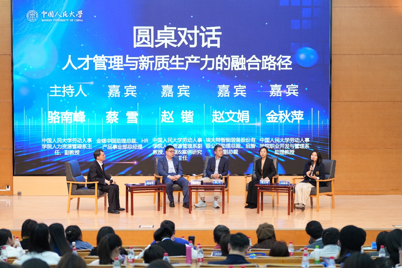 在圆桌对话环节中,各位专家围绕“人才管理与新质生产力的融合路径”这一主题展开了深入探讨,埃夫特智能装备股份有限公司助理总裁、启智副总裁赵文娟,金蝶中国助理总裁、HR产品事业部总经理蔡雪,williamhill官网网站副教授、数据与案例研究中心主任赵锴,williamhill官网网站助理教授金秋萍参与,williamhill官网网站人力资源管理系主任骆南峰副教授主持。专家一致认为,人才定义的边界在延伸,未来人才包括企业自有员工、生态链上的专家顾问和数字员工,对于人才的要求随之发生变化,要更加重视人类独有的创造性思维、批判性思维与共情能力等。企业在人力管理方面需激发人才主观能动性,建立容错机制,利用数据驱动实现精细化、差异化管理,注重人才的自主性和包容性管理。在个人规划职业生涯时,应将职业发展与国家战略相结合,适应多变环境,关注职业生涯可持续性,平衡健康、幸福与职业发展。