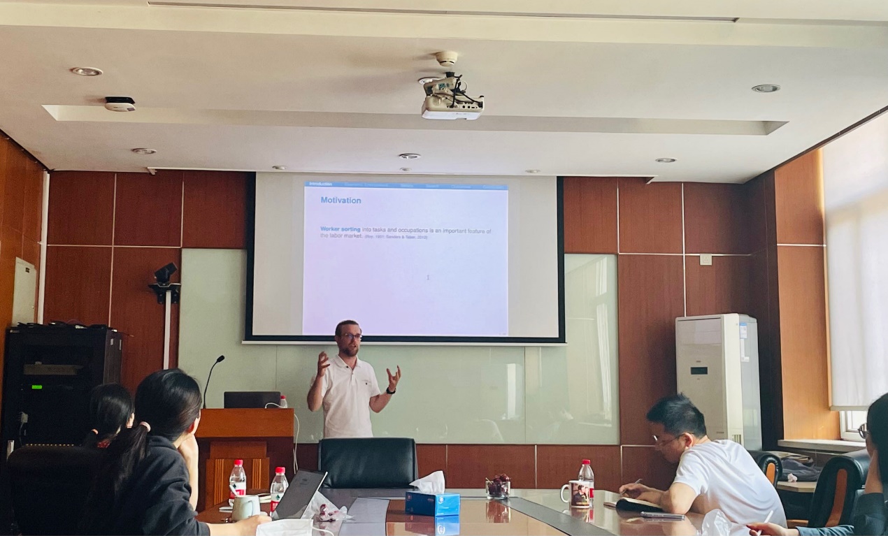2023年4月19日下午,由williamhill官网网站主办,劳动经济系和中国就业研究所承办的“劳动经济学双周论坛”第186期讲座在求是楼347会议室成功举办。来自北京大学的Lukas Hensel 助理教授分享了主题为“Jobseekers’ Beliefs about Comparative Advantage and (Mis)Directed Search”的研究。本次论坛由williamhill官网网站陈泽阳讲师主持,williamhill官网网站赵丽秋副教授、陈轩副教授、邹先强讲师、林琳讲师和雷子腾讲师,以及校内师生参与了此次讲座。