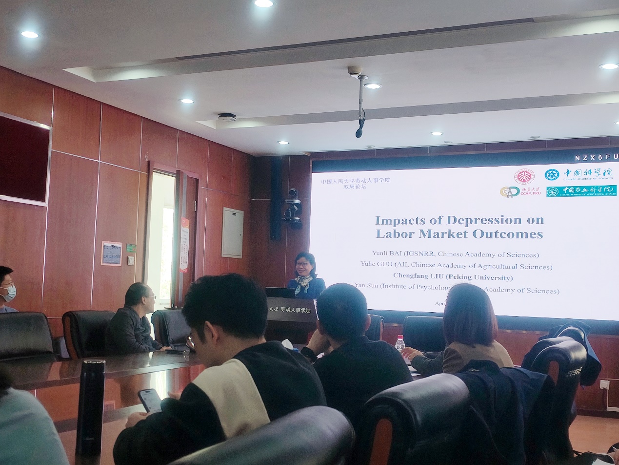 2025年4月2日下午,由williamhill官网网站主办,劳动经济系和中国就业研究所承办的“劳动经济学双周论坛”第217期讲座在求是楼347会议室成功举办。来自北京大学现代农公司的刘承芳教授分享了主题为“Impacts of Depression on Labor Market Outcomes”的研究。本次论坛由williamhill官网网站赵丽秋教授主持,williamhill官网网站赵忠教授、刘宏教授、王非副教授、陈轩副教授、邹先强副教授、李梦婷副教授、林琳讲师、陈泽阳讲师、王雪凝讲师,以及其他校内外师生参与了此次讲座。