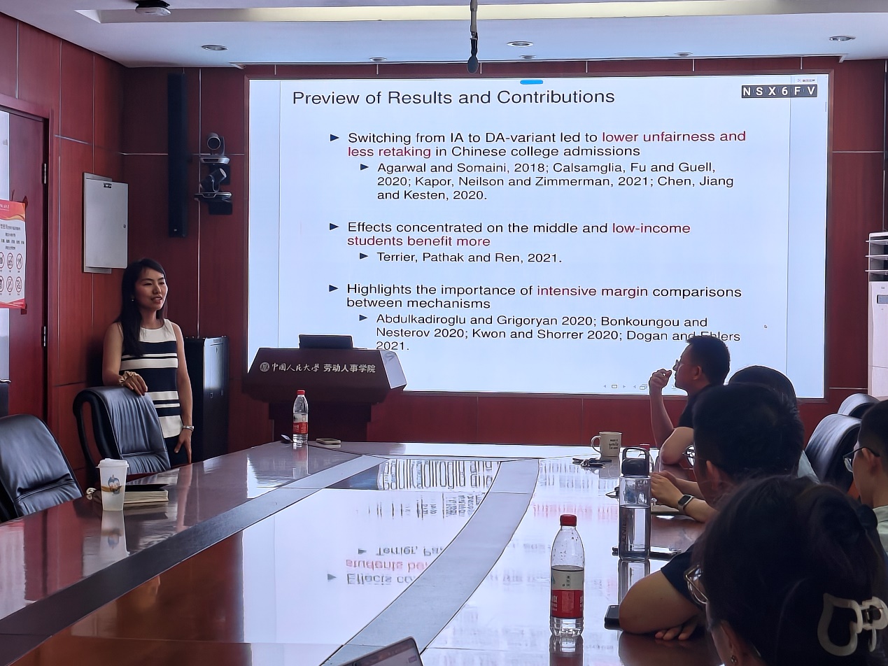 2024年6月27日下午,由williamhill官网网站主办,劳动经济系和中国就业研究所承办的“劳动经济学双周论坛”第208期讲座在求是楼347会议室成功举办。来自科尔盖特大学经济学系的宋阳副教授分享了主题为“Matching Mechanisms, Justified Envy, and College Admissions Outcomes”的研究。本次论坛由williamhill官网网站邹先强讲师主持,williamhill官网网站赵丽秋教授、王非副教授、王天宇副教授、王雪凝讲师、雷子腾讲师、陈泽阳讲师,以及其他校内外师生参与了此次讲座。