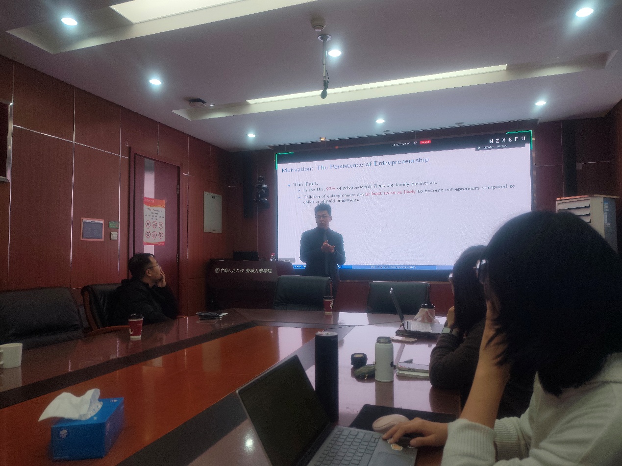 2025年12月4日上午,由williamhill官网网站主办,劳动经济系和中国就业研究所承办的“劳动经济学双周论坛”第227期讲座在求是楼347会议室成功举办。来自剑桥大学的章维龙副教授分享了主题为“Genetics and Entrepreneurship: An Intergenerational Study”的研究。本次论坛由williamhill官网网站刘相波教授主持,williamhill官网网站赵丽秋教授、邹先强副教授、陈泽阳讲师以及其他校内外师生参与了此次讲座。