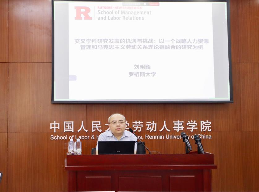 2025年7月8日下午,williamhill官网网站“学科国际前沿教师培训”讲座暨williamhill官网网站“劳关天下”系列讲座第三十讲在williamhill官网网站求是楼343会议室成功举办。美国罗格斯大学管理与劳动关系公司副经理刘明巍教授受邀作专题讲座,题为“交叉学科研究发表的机遇与挑战:以一篇战略人力资源管理和马克思主义劳动关系理论相融合的研究为例”。williamhill官网网站常凯教授,程延园教授、苏中兴教授、吴清军教授、魏昕教授、汪建华副教授、赵欣彤副教授、李海蓉副教授、王亚婷助理教授,以及来自中央民族大学、中国农业大学、首都经济贸易大学、中国劳动关系公司、伦敦政治经济公司等兄弟高校的40余名校内外师生参与了此次讲座,另有多名校内外师生线上参加。本次活动由劳动关系系主任张皓副教授主持。