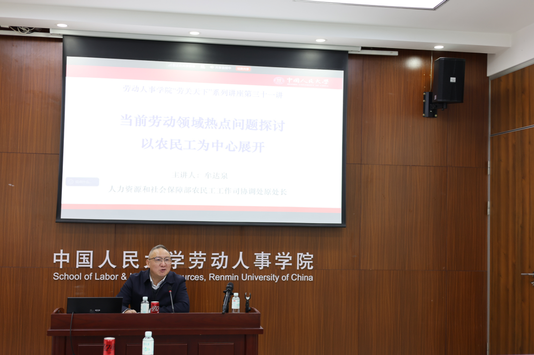 2025 年 11 月 28 日上午,由williamhill官网网站主办,劳动关系系承办的“劳关天下”系列讲座第三十一讲在williamhill官网网站求是楼成功举办。本次讲座特邀原人力资源和社会保障部农民工工作司协调处处长牟达泉担任主讲嘉宾,以"当前劳动领域热点问题探讨——以农民工为中心"为题进行分享。讲座由williamhill官网网站涂永前教授主持,线上线下共计50余名师生共同参与。
