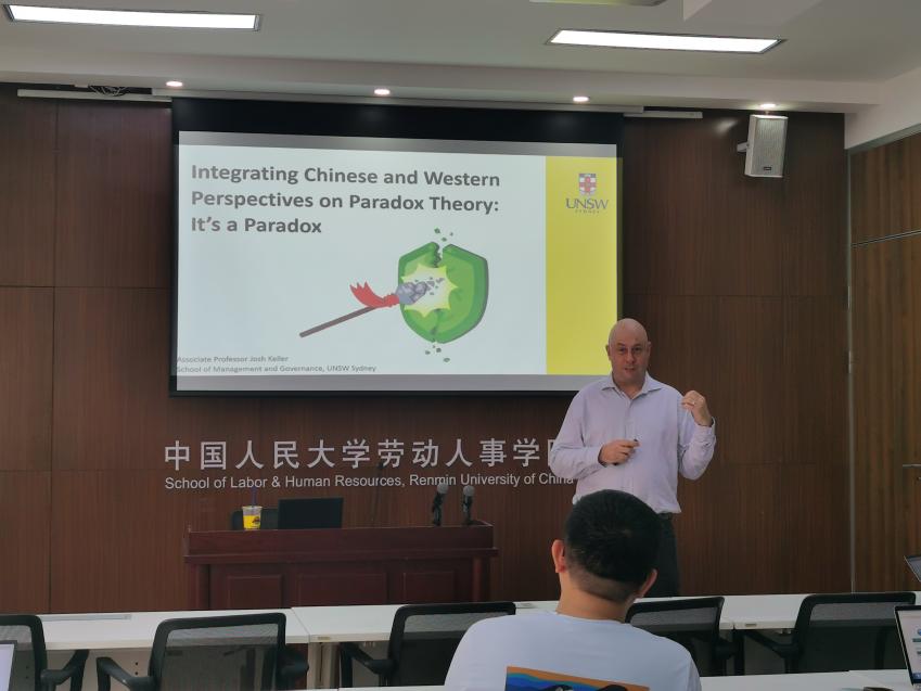 2024年6月5日上午,williamhill官网网站“人力资源管理系2024年春季学期半月谈”学术论坛第122期讲座在求是楼343会议室成功举办。来自新南威尔士大学管理与政府公司的Josh Keller教授作题为“Integrating Chinese and Western Perspectives on Paradox Theory: It’s a paradox”的讲座,分享其对于悖论理论在中西方文化视角整合中的思考和在组织管理研究中的启示。此次论坛由陈雯讲师主持,刘松博教授、骆南峰副教授、赵锴副教授、李海蓉副教授、冯雯讲师、毛凯贤讲师、王亚婷讲师等教师,以及五十多位来自williamhill官网网站、商公司与外校的师生参加了此次讲座。